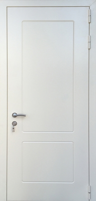 Варианты и материалы отделки различаются в зависимости от модели двери. Универсальное покрытие – порошковое напыление с фактурной или гладкой поверхностью, с возможностью выбора цвета покраски по RAL. Оно обеспечивает максимальную защиту металла от повреждений и коррозии, подходит для активной эксплуатации и мест с высокой проходимостью. Также в каталоге представлены двери с отделкой панелями МДФ в современном и классическом стиле, под любой интерьер.